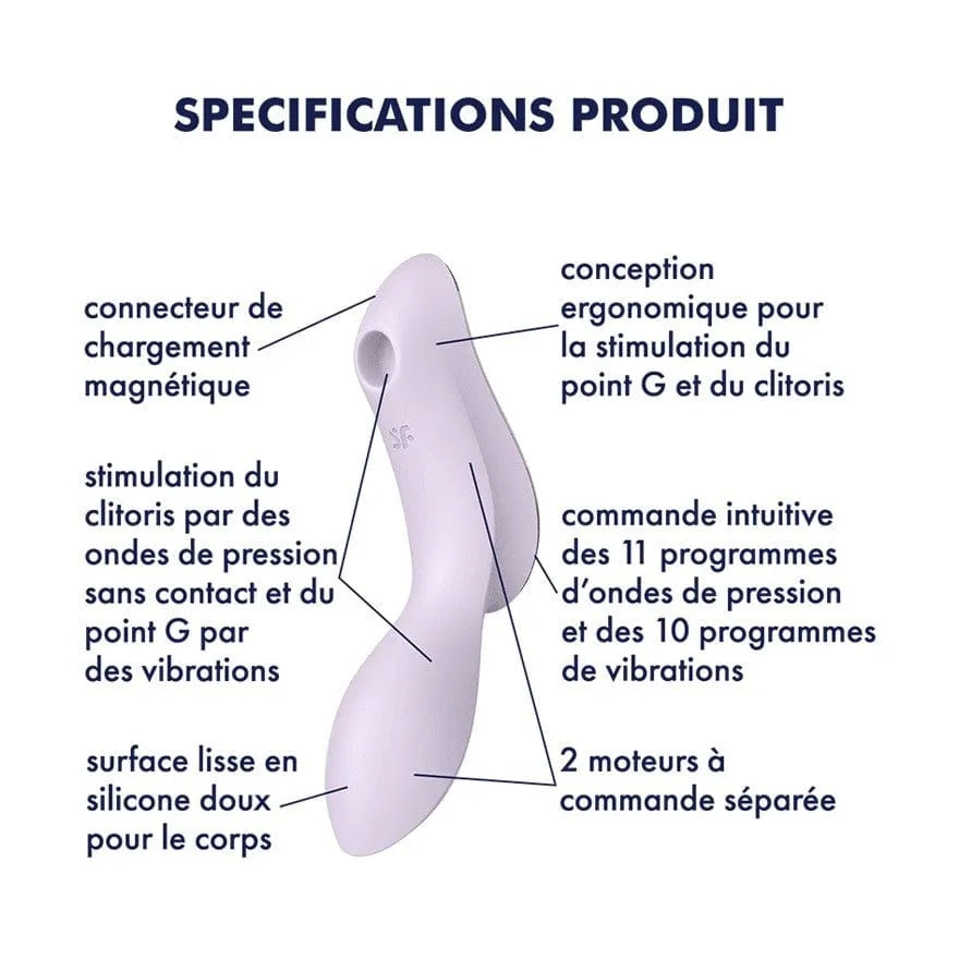 - Usage : Stimulation clitoridienne par ondes de pression et stimulation du point G par vibrations, avec utilisation possible dans l'eau